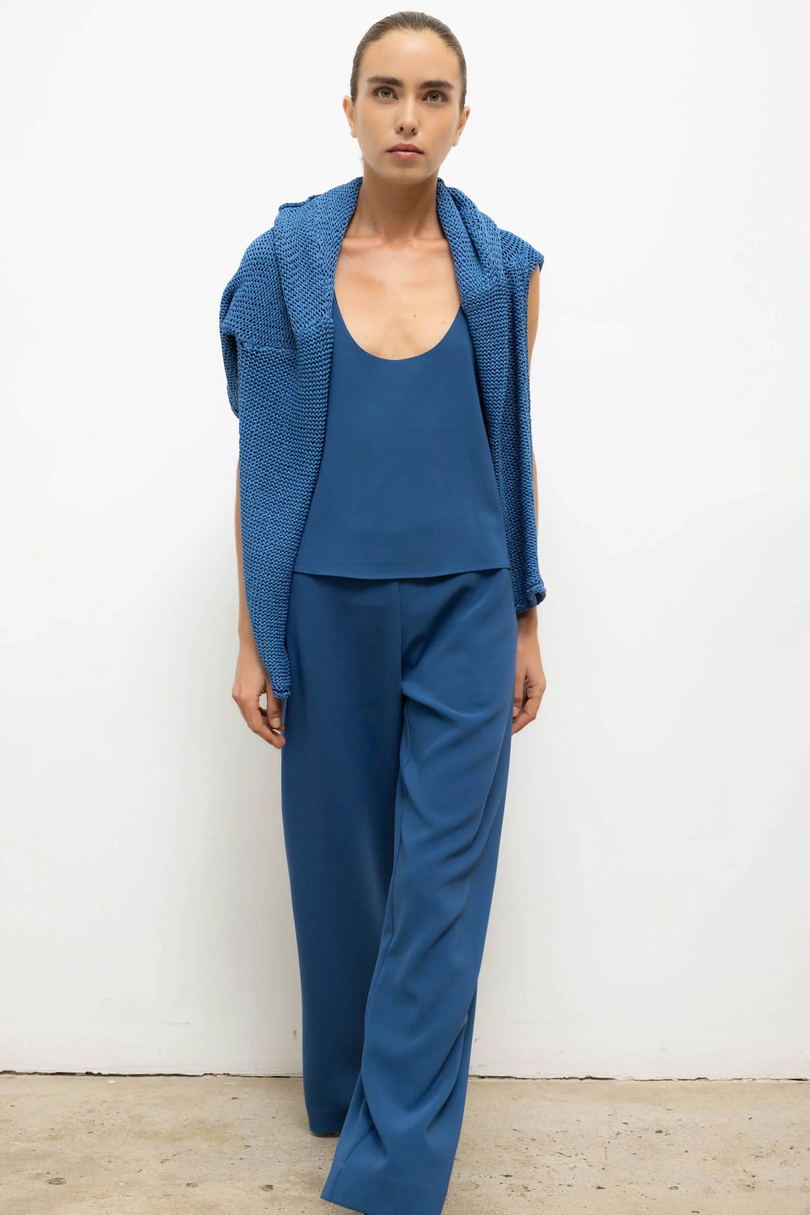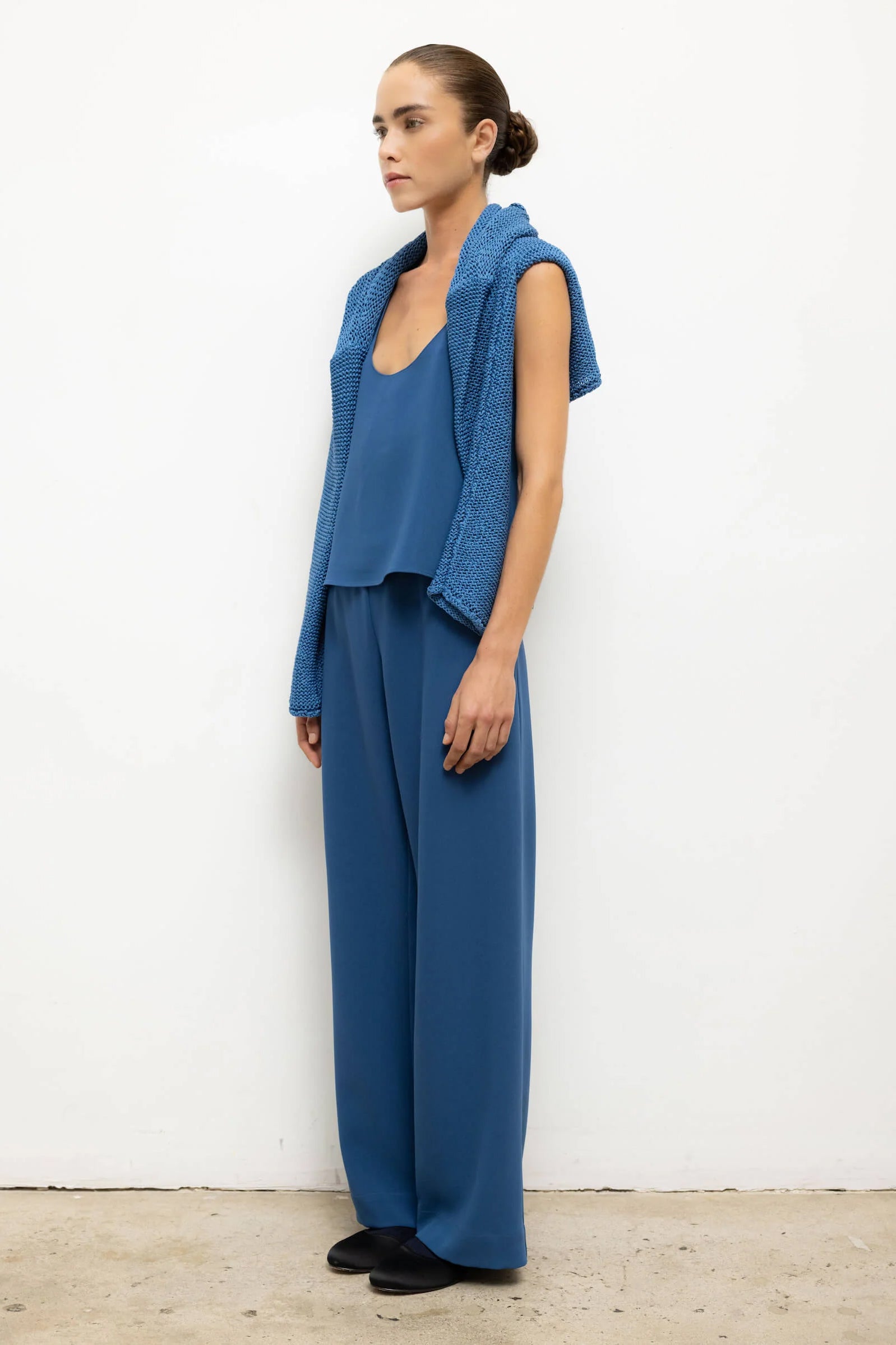 Cut in Leset's Japanese-crafted Arielle Crepe, The Arielle Pocket Pant is a pull-on style trouser, featuring a relaxed leg silhouette and side slit pockets. The Arielle is a weighty double woven crepe crafted in Japan. Envisioned in understated cool silhouettes.