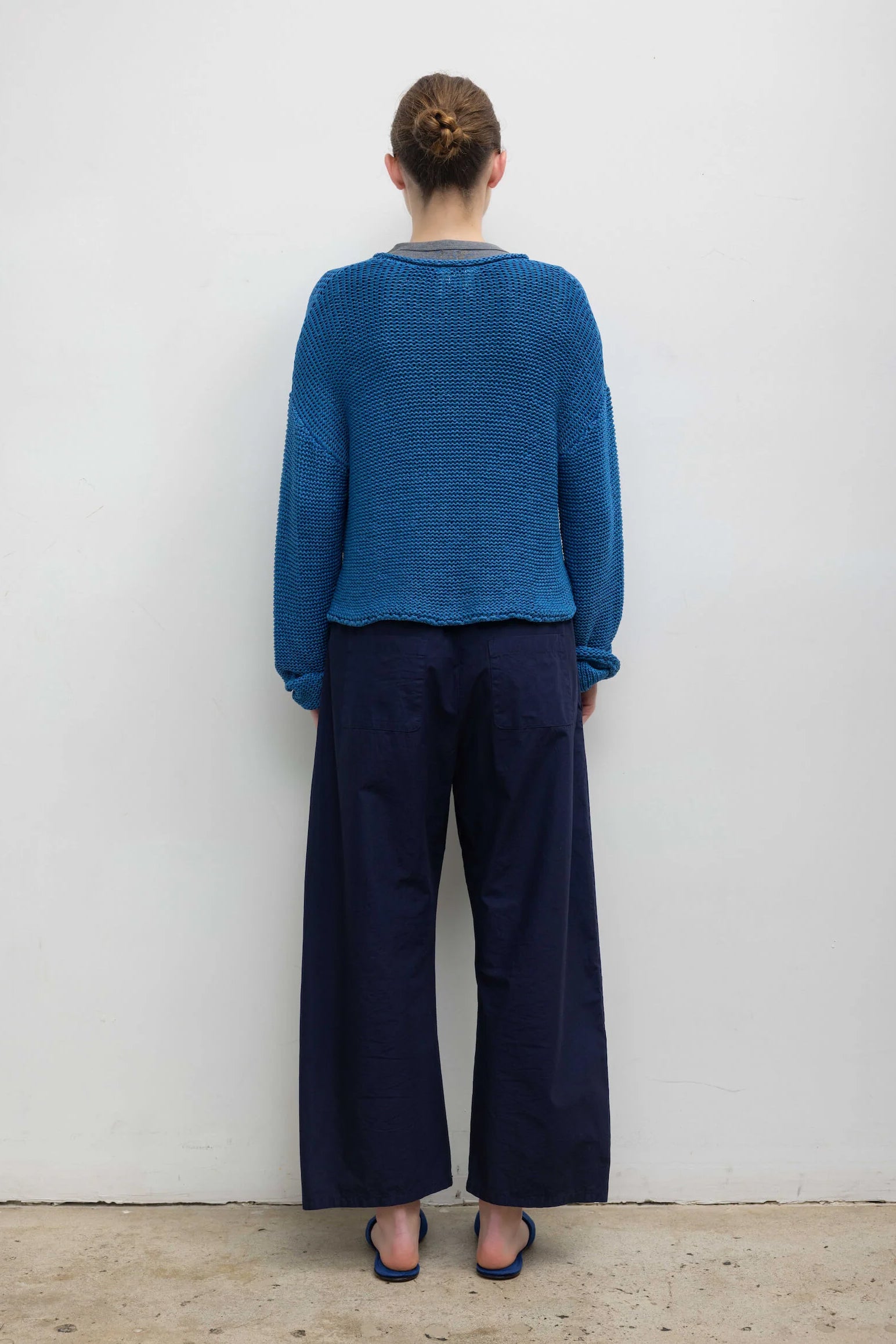 Knit in Leset's Italian-crafted Ben Cotton Knit, The Ben Crew Pullover features a crew neckline, slightly elongated long sleeves, and rolled hem edges.