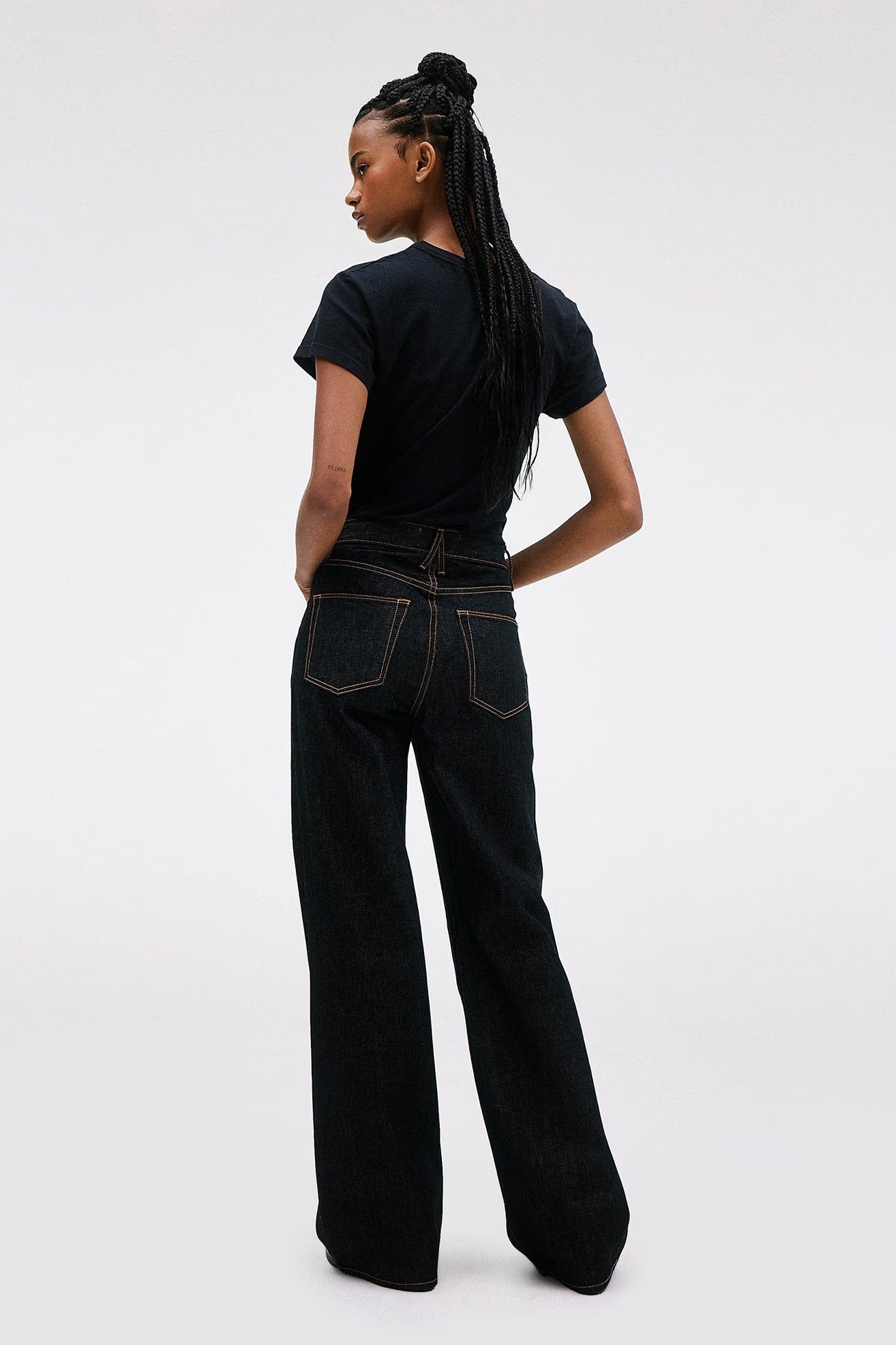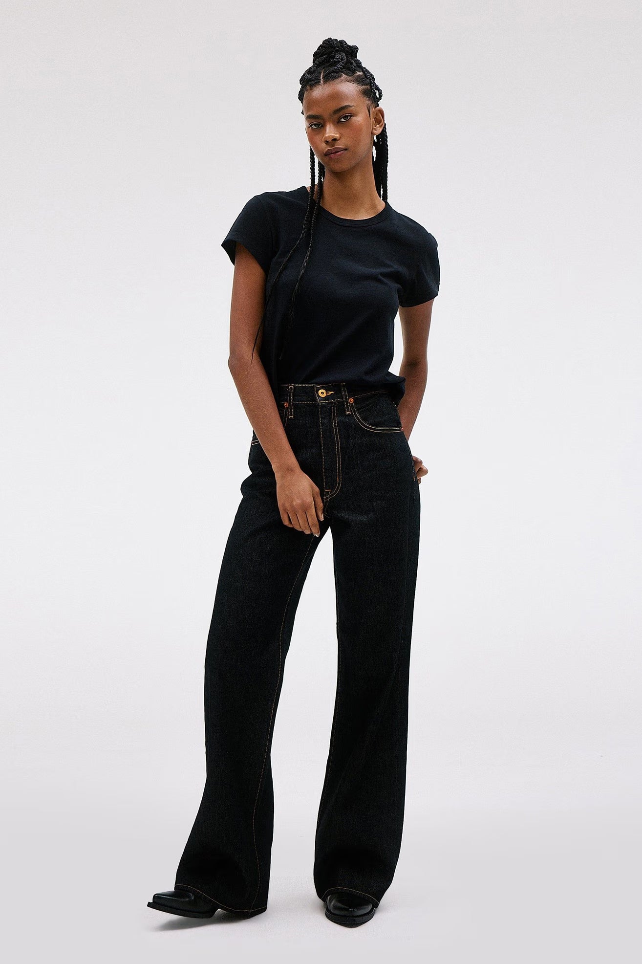 Grace is a signature style designed to elongate the leg with a high-rise waist and a playful wide-leg silhouette.