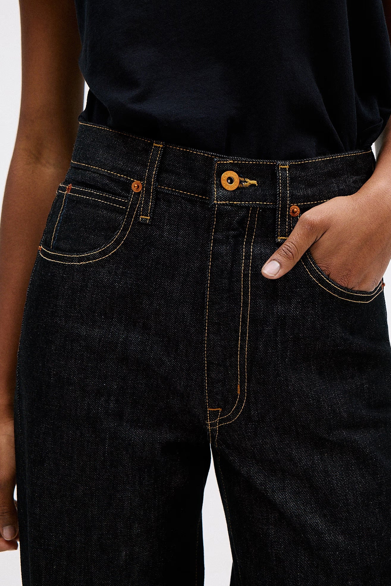 Empty Sky is rinsed in a deep black inspired by raw denim, yet finished with a softened hand feel.