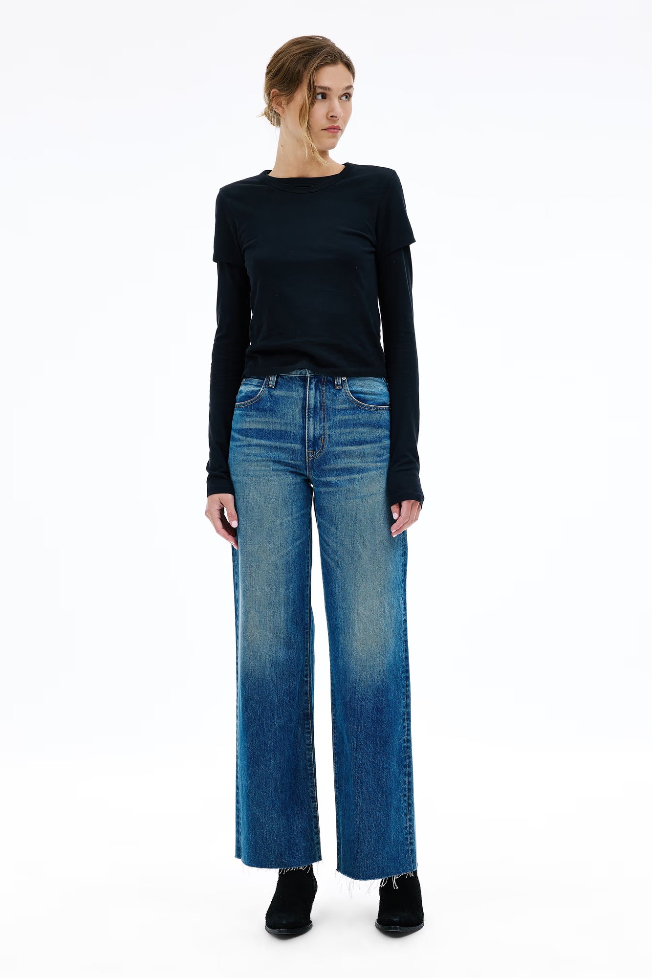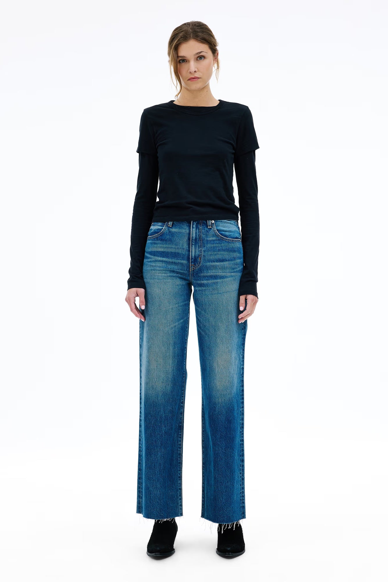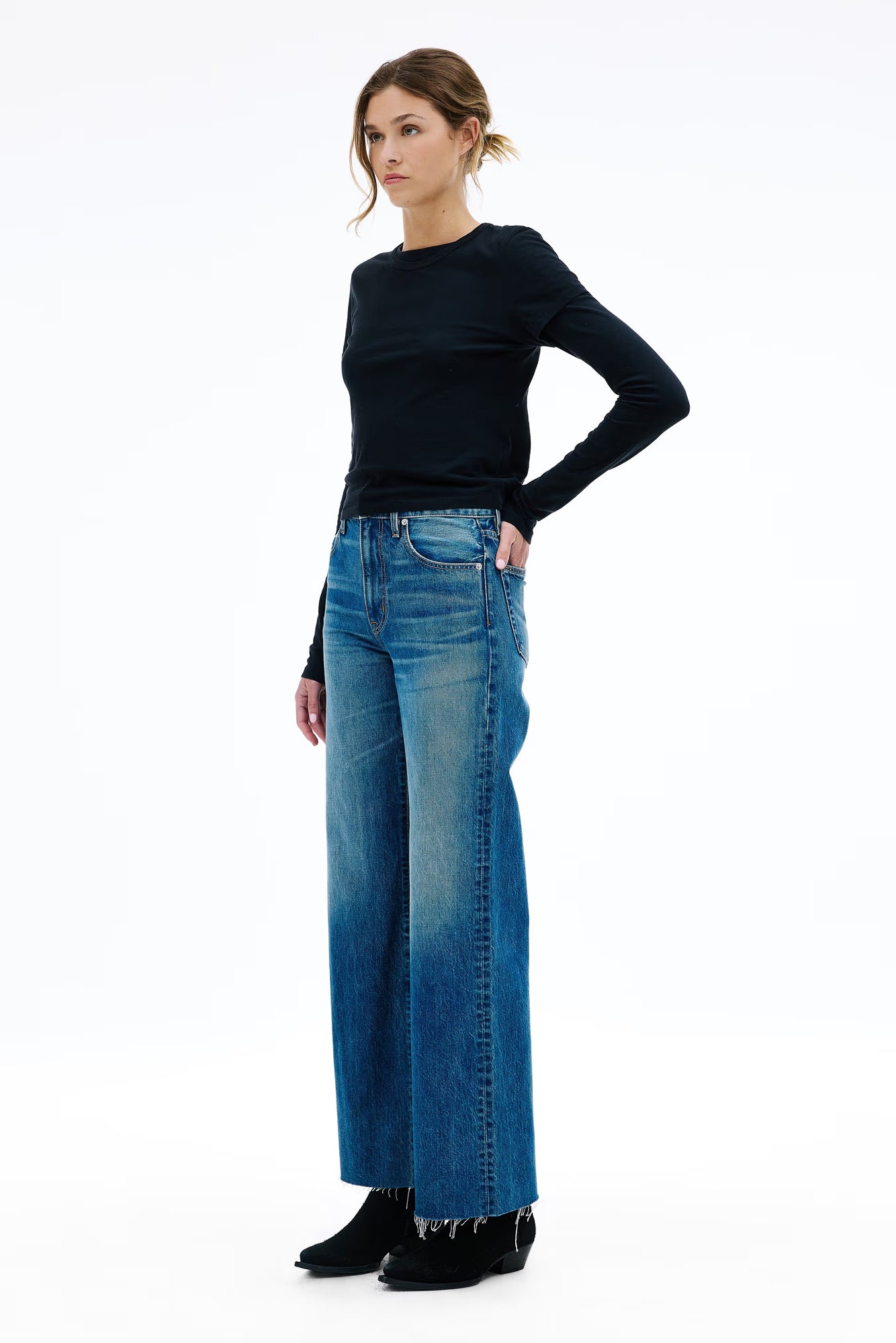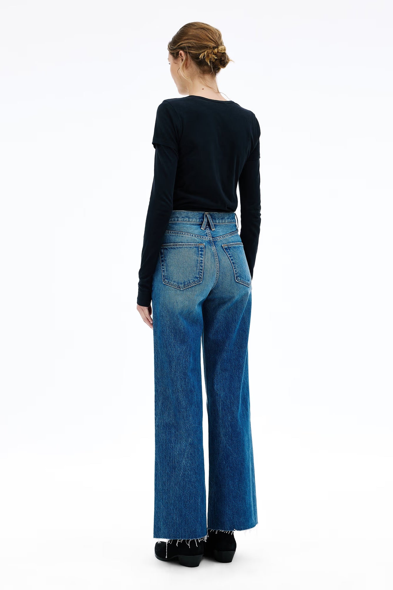 Grace is a signature style designed to elongate the leg with a high-rise waist and a playful wide-leg silhouette.