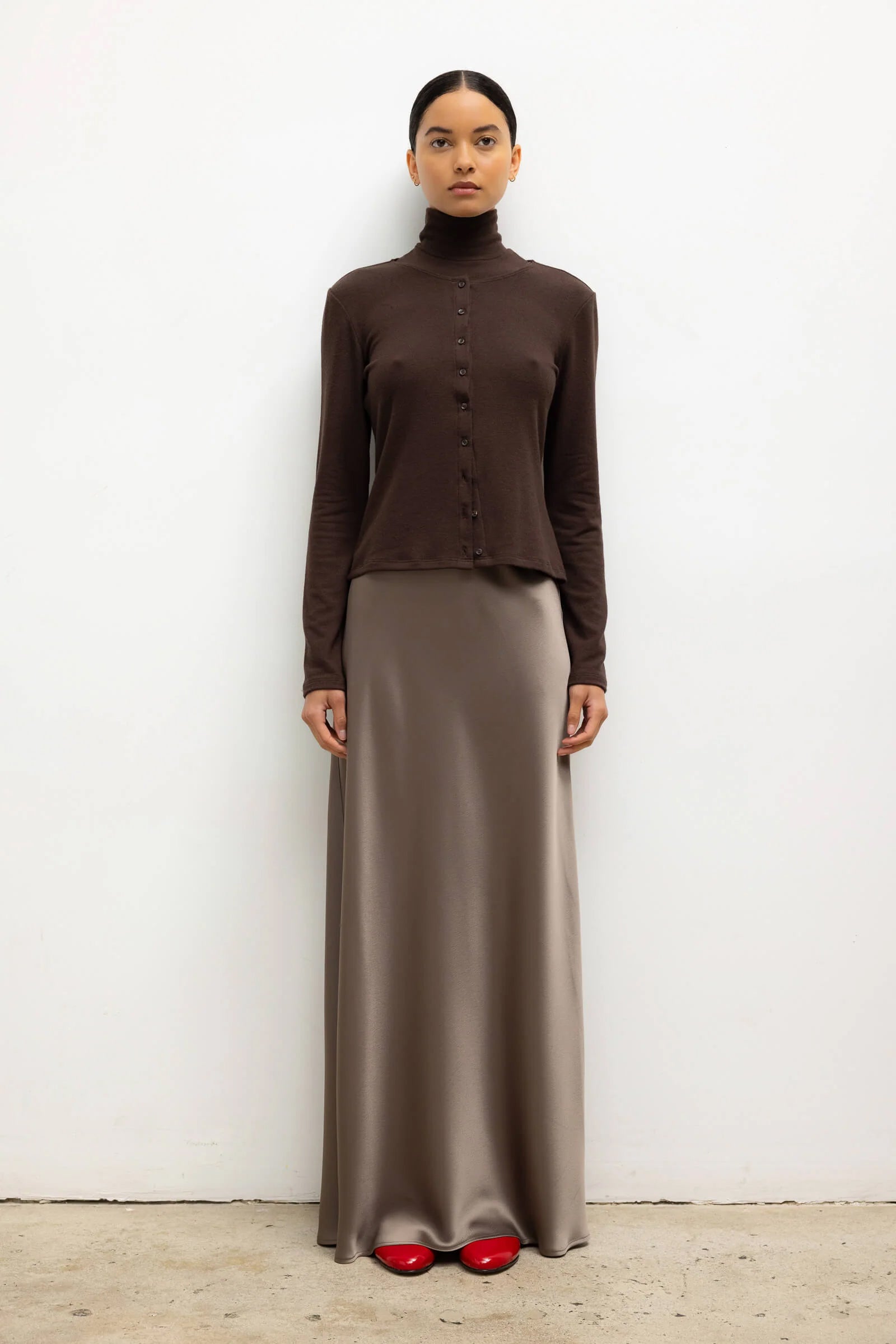 Cut in Leset's buttery soft brushed Lauren sweater jersey, The Lauren Classic Cardigan is the full length sister to our bestselling Lauren Crop Cardigan II. This wardrobe staple features a tonal button front closure and fitted long sleeves. If in-between sizes, we recommend sizing up.