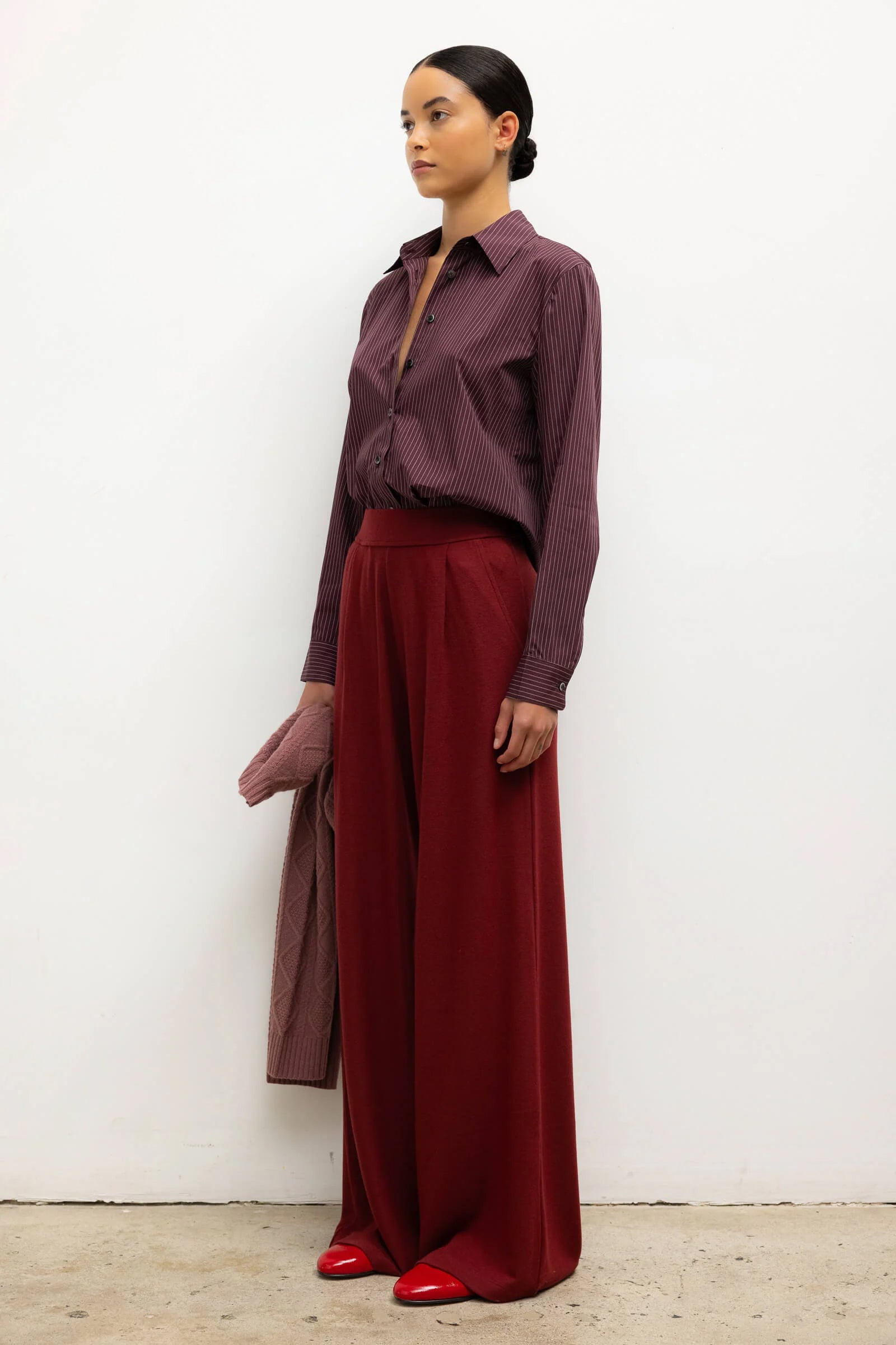 Cut in our buttery soft Lauren Sweater Jersey, The Lauren Pleated Pocket Pant is a relaxed, wide leg silhouette featuring subtle front pleats and a wide, high rise waistband.