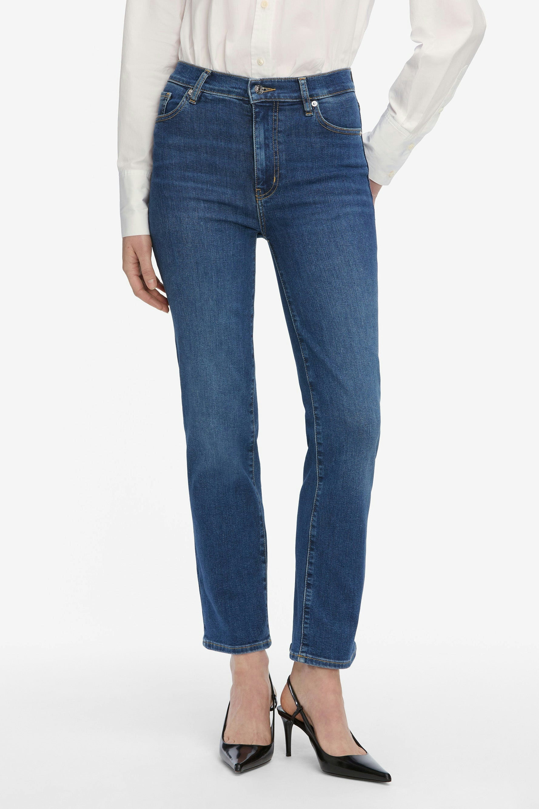 The ultimate straight-leg jean crafted from super stretch denim for all day comfort. Le Sleek Straight features a high rise and relaxed straight leg that hits at the ankle, perfectly designed to be dressed up or down, and worn all day, everyday.