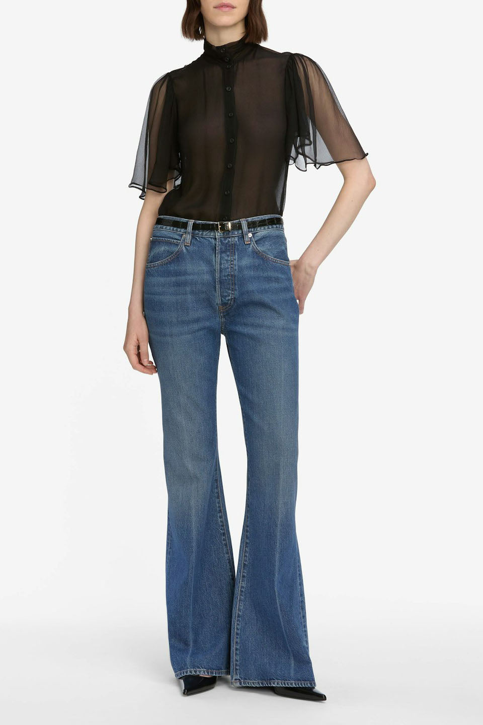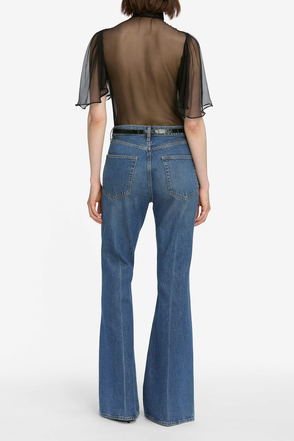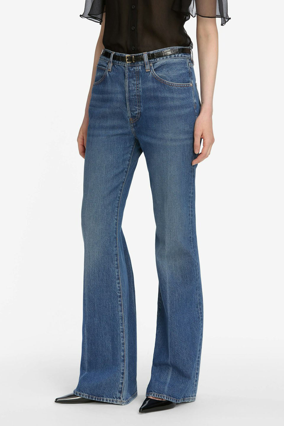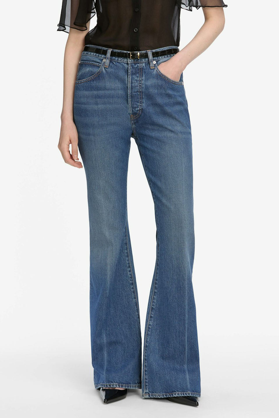 This Frame jean sits just above the hip and breaks into a relaxed, wide-leg flare. The spacious fit is defined by rigid denim for structure and an effortlessly vintage feel.